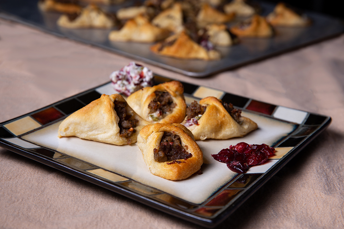 11Using a teaspoon measuring spoon scoop the filling up and place a scant teaspoon of filling in the center of each square of crescent roll dough.