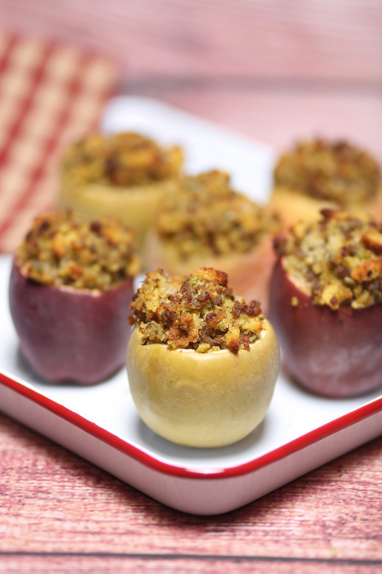 Bake uncovered at 350 degrees for about 30 minutes or until the apples are softened, but not falling apart. If you don't want the stuffing to brown, cover the dish while baking.